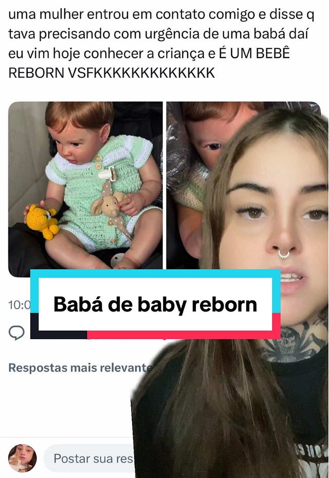 o que era uma brincadeira de criança virou assunto sério entre adultos: a comunidade reborn não para de crescer nos cinco cantos do Brasil. e também não para de despertar reações de todos os tipos. de cara, é comum um certo estranhamento ao assistir aos novos tipos de conteúdo que estão circulando; ou se deparar com um desses bonecos hiper-realistas em um passeio no shopping; ou descobrir que existem simulações de gestações e partos; ler sobre a mulher que se declara mãe de 250 bonecos; ou simplesmente ficar sabendo que o padre Fábio de Melo adotou uma bb reborb portadora de síndrome de down em uma maternidade estadounidense. e, claro, que Britney Spears levou o dela pro México.